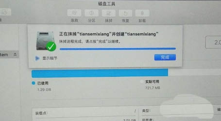 4、按照上面的操作步骤完成以后,就需要等待电脑自己抹盘成功了,成功以后点击完成。